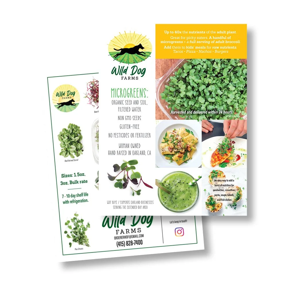 Wild Dog Farms needed a sell sheet, booth signage and customer packaging to be created. Communication from the brand is always constant across all platforms as shown.